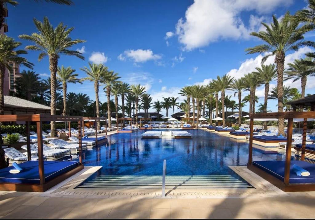 The Cove is Atlantis’ most exclusive escape — all-suite, ocean-facing and just steps from two pristine beaches. Set apart by a private road, it feels calm and elevated, with koi ponds, ocean breezes and East Asian design touches. Suites start at nearly 700 square feet with walk-in closets, soaking tubs and dreamy Caribbean views through floor-to-ceiling windows.