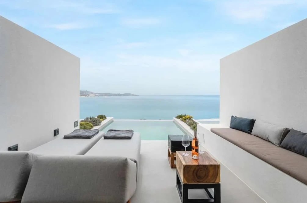 Domes White Coast Milos. A secluded, adults-only escape perched above the sea, with private plunge pools and front-row seats to Milos’ fiery sunsets.